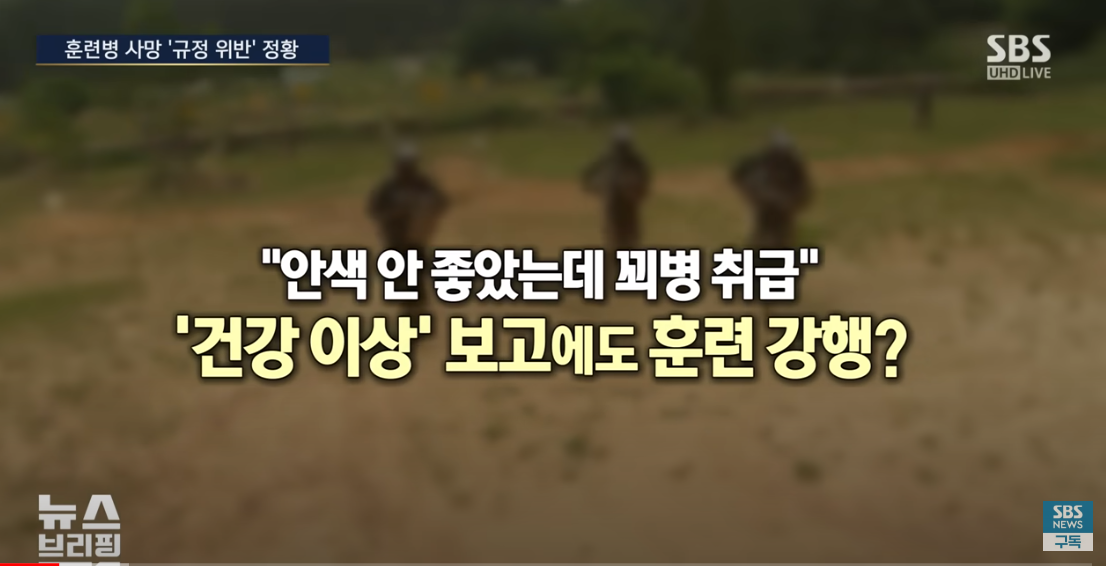 현재까지는 해당 훈련병은 무리한 운동과 과도한 체온 상승으로 근육이 손상돼 사망에 이르는 병인 '횡문근융해증'으로 의심되는 증상을 보여주고 세상을 떠난 것으로 알려져 있습니다.
