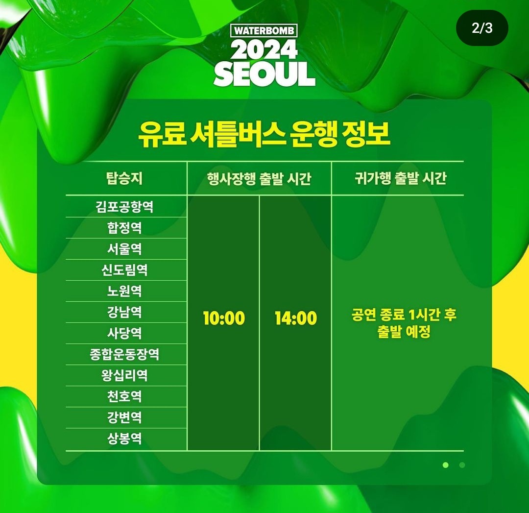 워터밤 서울 2024 셔틀 정보